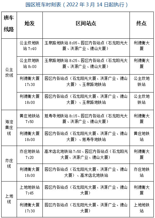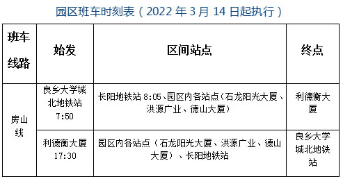 四、新設(shè)房山線班車,具體時刻表如下: